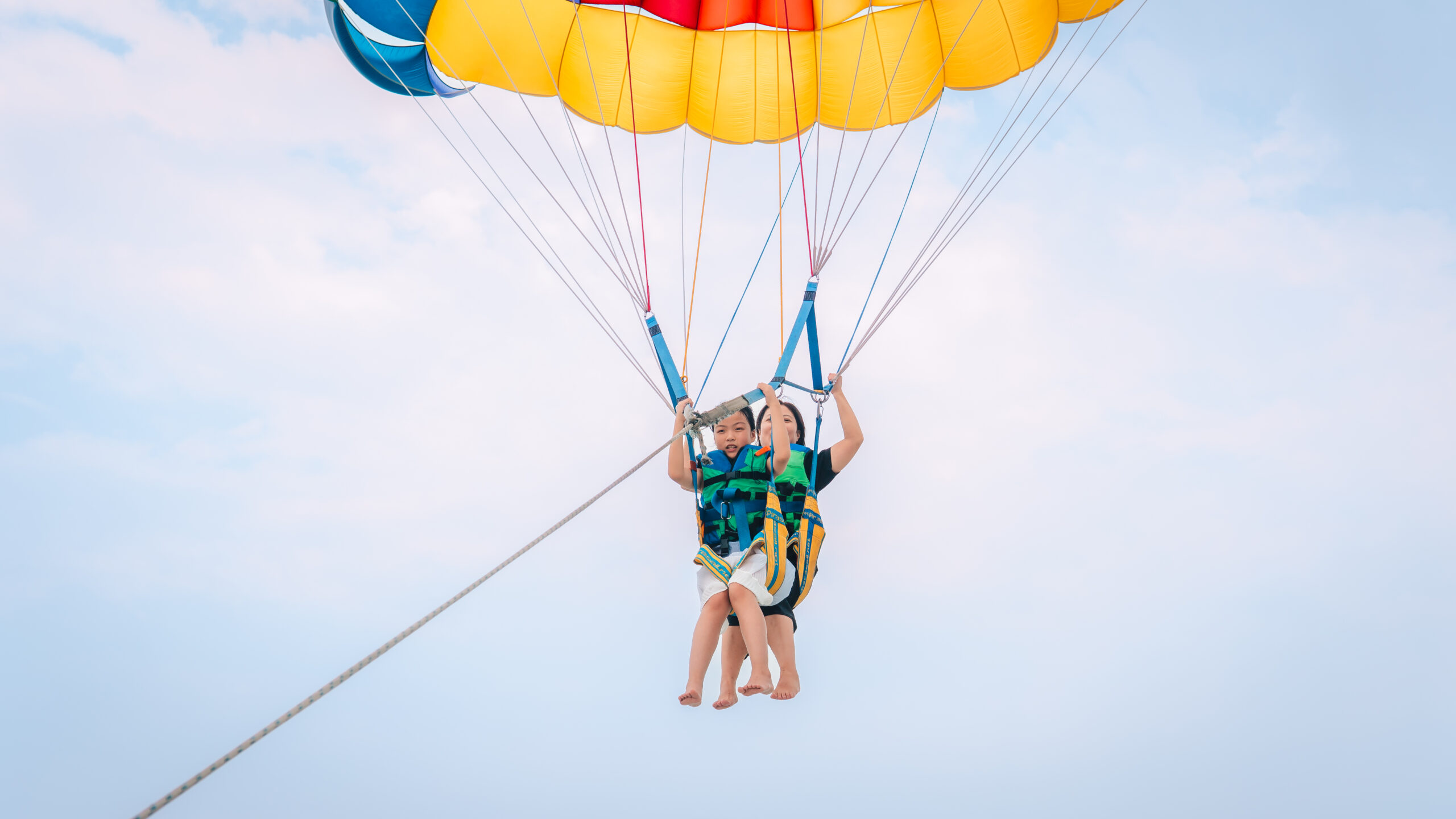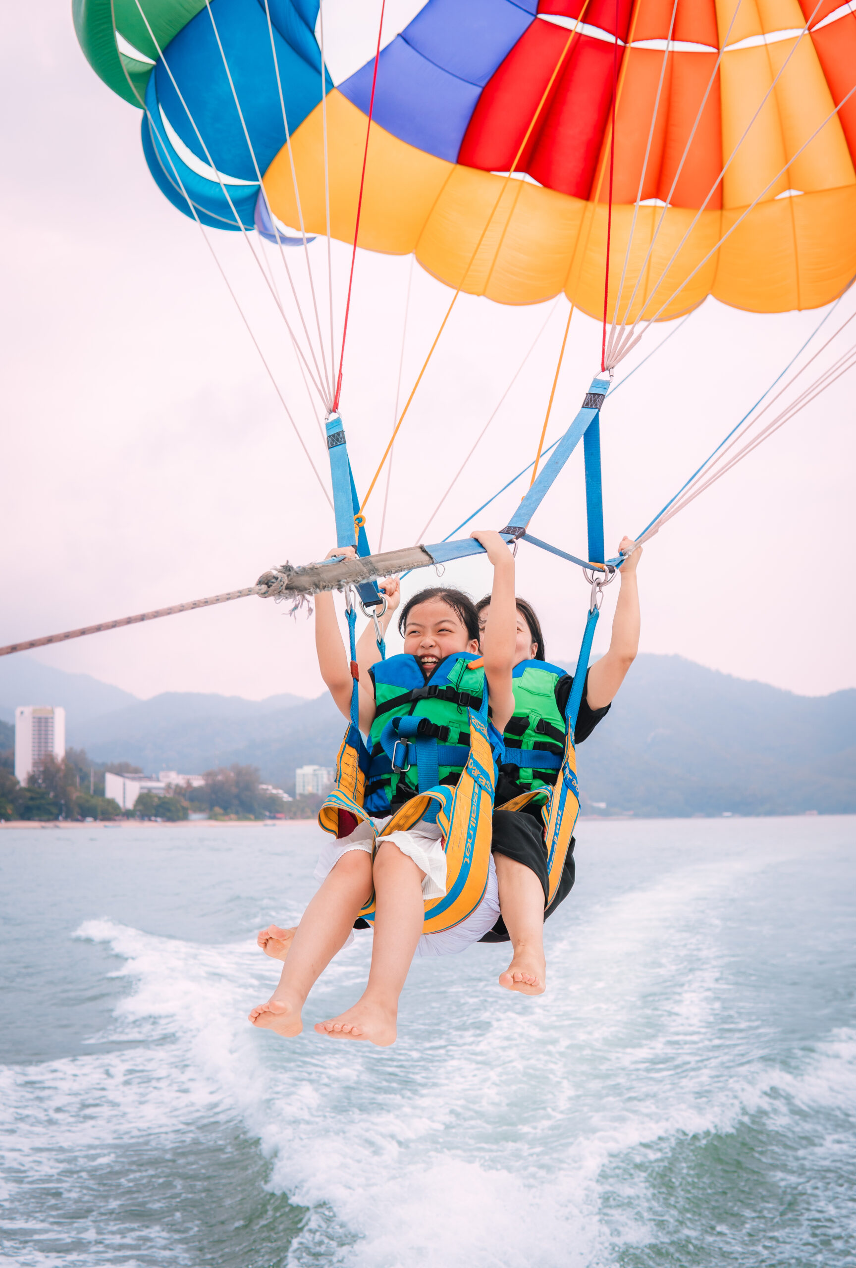 When you choose parasailing with Sunrise Watersports, prepare for an unforgettable experience soaring high above Batu Ferringhi’s pristine waters. Our trained crew ensures your ride is safe, smooth, and packed with excitement. Whether you’re flying solo or tandem, the thrill and views will leave you breathless.