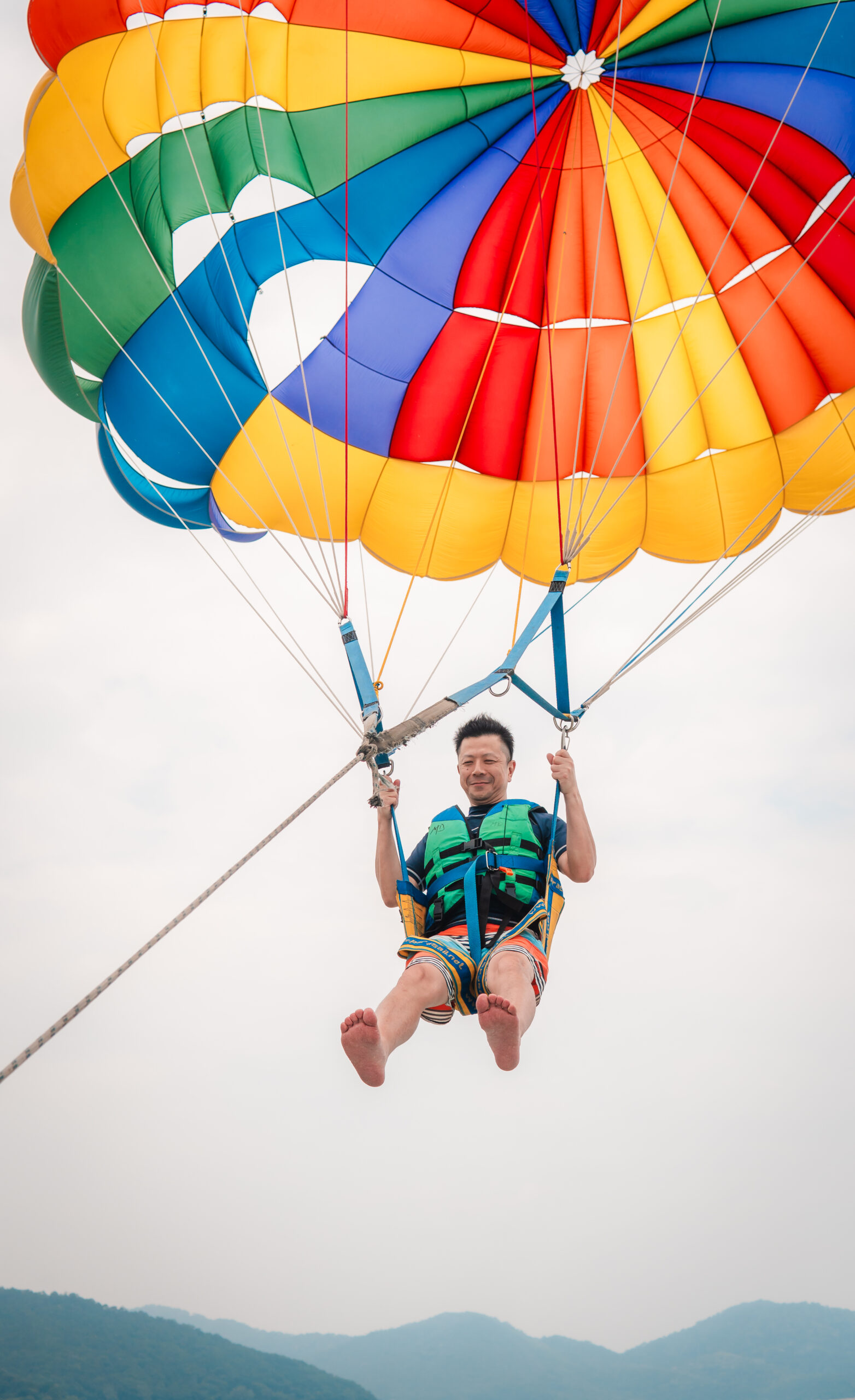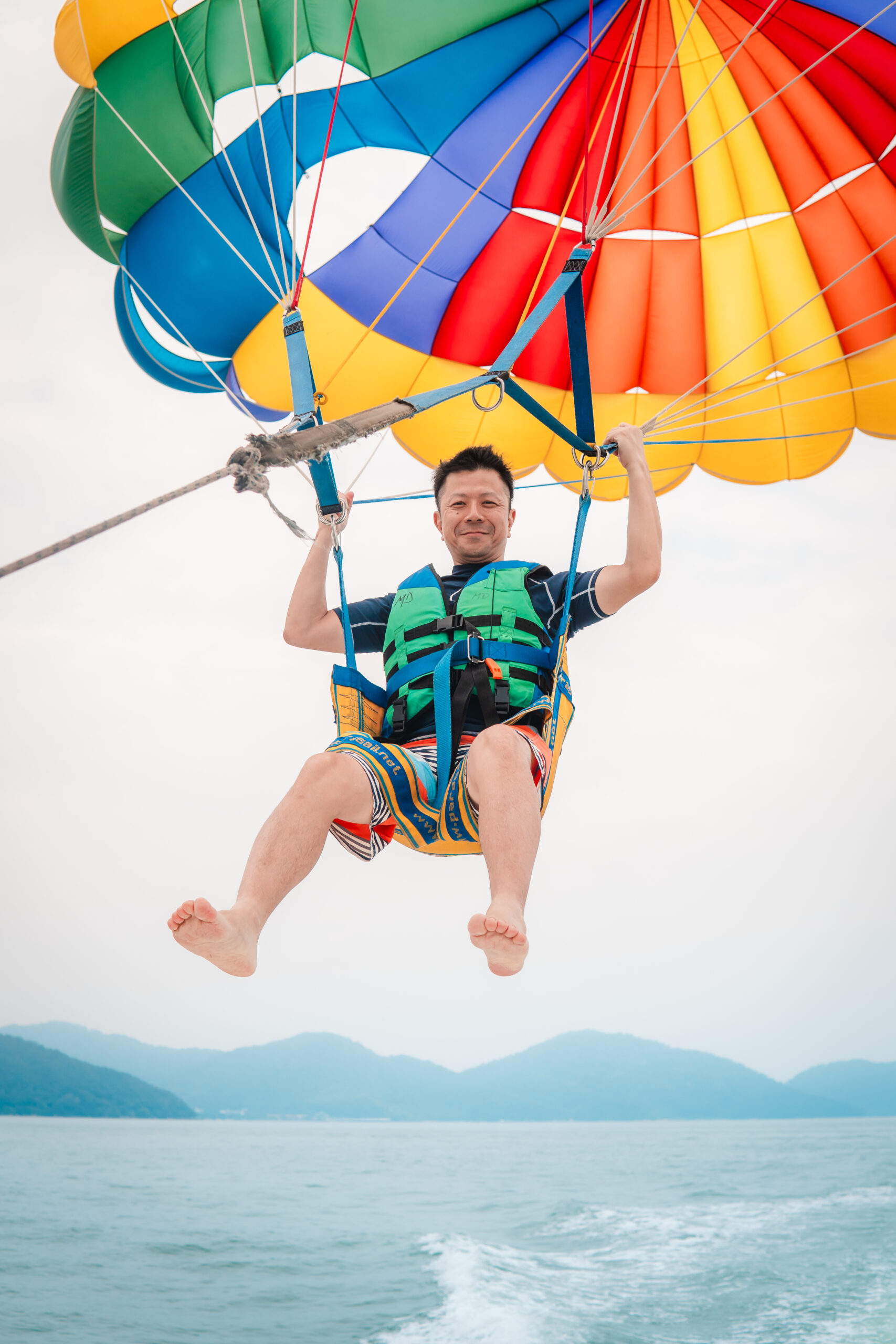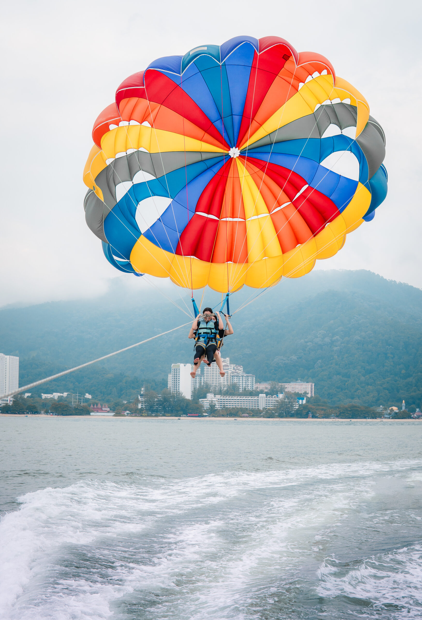 Experience the thrill of parasailing over the stunning coastline of Batu Ferringhi! At Sunrise Watersports, we offer an unforgettable parasailing adventure that lets you glide through the sky, taking in breathtaking views of the turquoise waters and golden beaches below. Whether you’re an adrenaline junkie or a first-time flyer, our professional team ensures a safe and exhilarating ride every time. Ready to soar? Book your parasailing experience with us today!