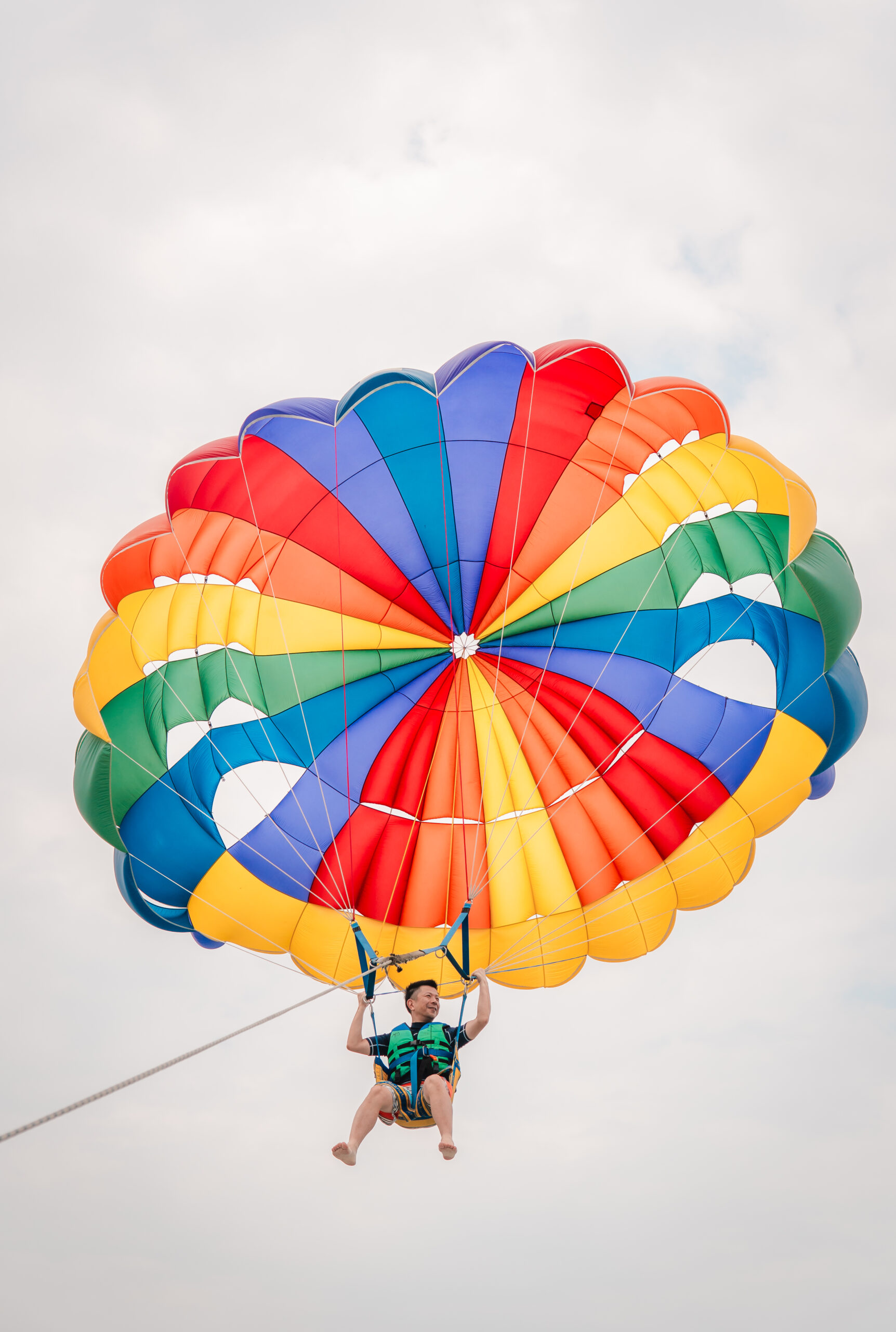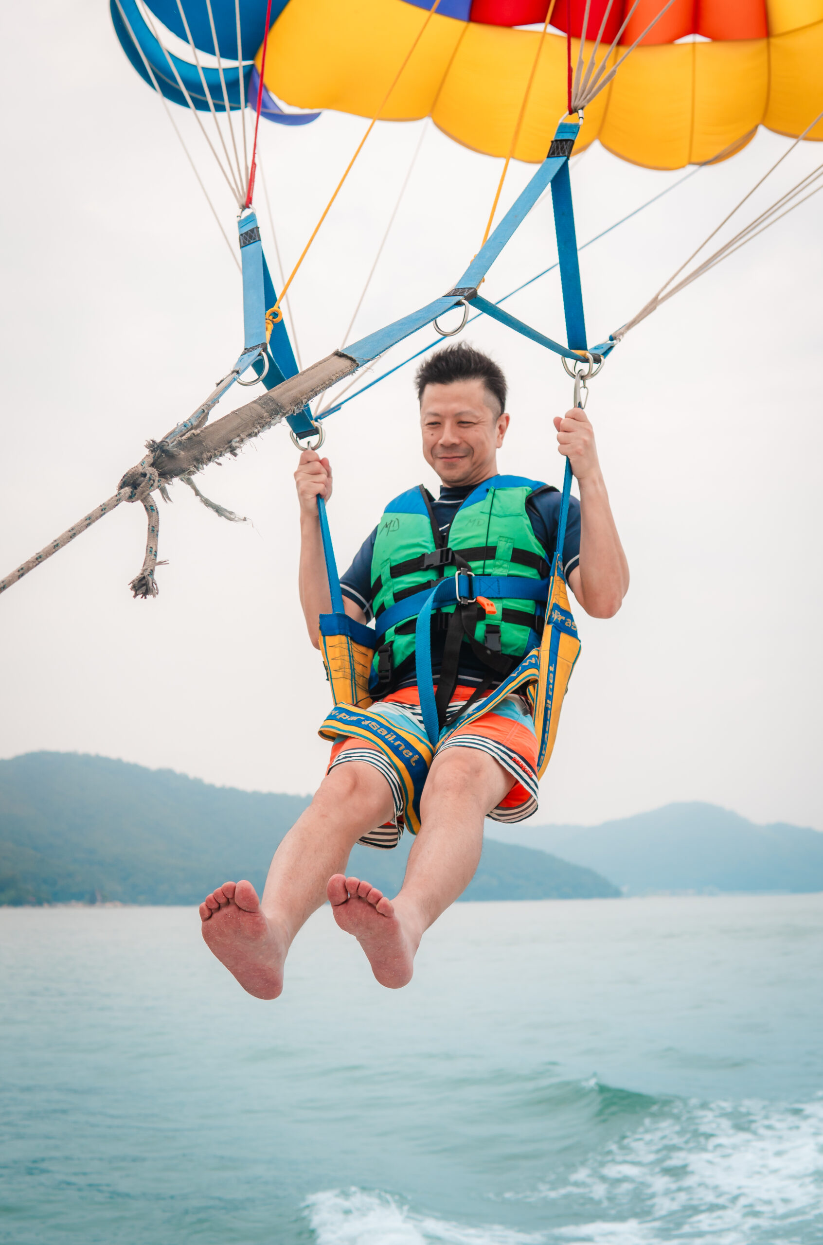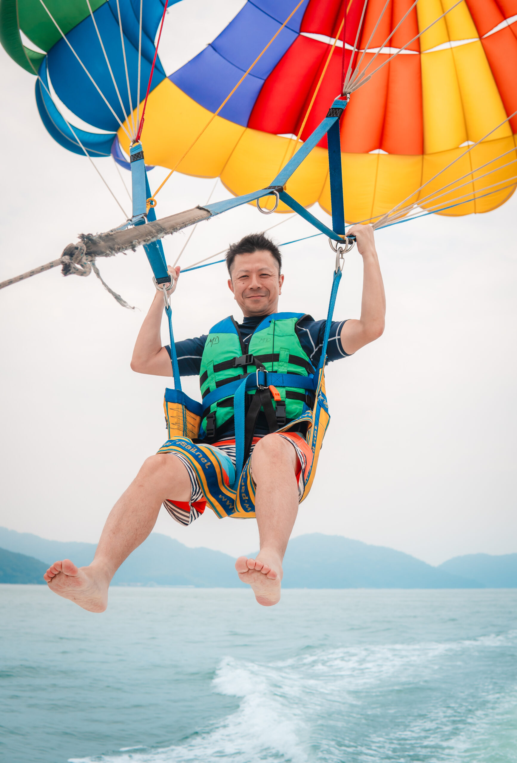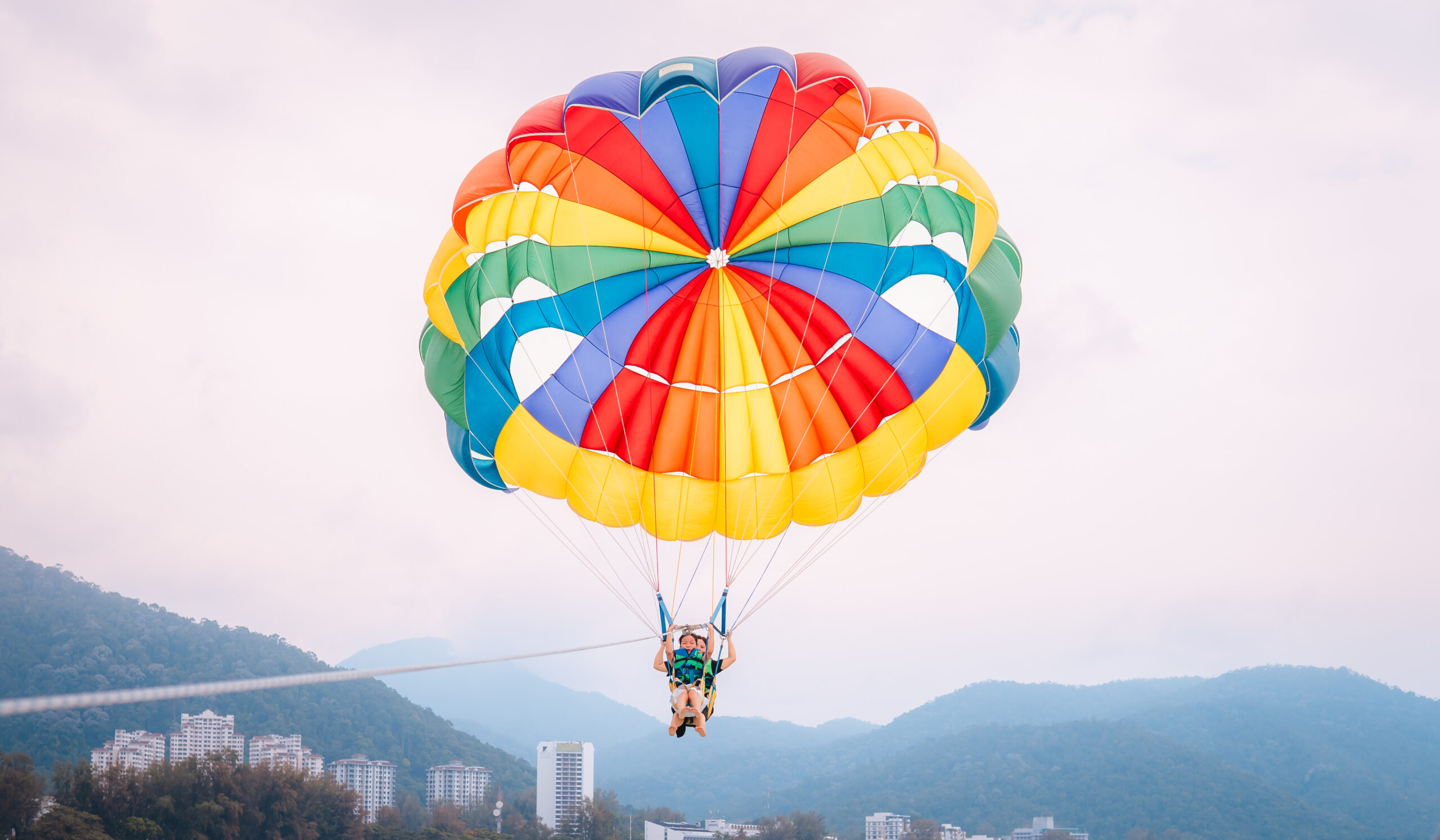Experience the thrill of parasailing over the stunning coastline of Batu Ferringhi! At Sunrise Watersports, we offer an unforgettable parasailing adventure that lets you glide through the sky, taking in breathtaking views of the turquoise waters and golden beaches below. Whether you’re an adrenaline junkie or a first-time flyer, our professional team ensures a safe and exhilarating ride every time. Ready to soar? Book your parasailing experience with us today!